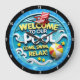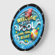 Relógio com piscina com relaxamento da convocação em cores vibrantes Um relógio decorativo com tema de piscina com design que convida relaxamento e diversão. O estilo aquático vibrante inclui um tema alegre inspirado na praia perfeito para espaços ao ar livre ou decorativos de verão.