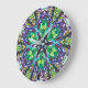This Kaleidoscope clock serves as a mandala for meditation, a focal point for the imagination, and as a functional timepiece. Kinetic Collage kaleidoscope compositions are created from psychedelic light show screen capture images. 1/30th of a second captured in space and time. Each unique image’s name is based on some special characteristic of the composition, or on whimsy. If you gaze at this Kaleidoscope clock long enough, time may stand still. . . Brilliant colors paint the screen in projected syncopation. Exotic shapes shift and careen, spinning vision with sensation. A crazy scene and that’s a fact. Making sense seems out of reason. But when you snap a slice intact — there’s potential for cohesion. Copy and paste it, flip and seal. Repeat until the arc’s complete. Construct it so it will reveal a bright kaleidoscopic treat. Thus from chaos, a balanced form. Perfect in pleasing symmetry. If only life would so conform, we all could live in harmony…Please note: If you wish to have any Zazzle product imprinted with one of my arts, let me know your preferences and I’ll make it happen. kineticcollage@cox.net