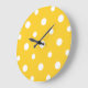 Um pulso de disparo de parede muito chique, redondo, com um teste padrão de bolinhas Enorme-feitas sob medida em um fundo amarelo dourado; da coleção fino & Painterly do "Daisychain"