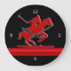 Relógio Grande Pônei de polo vermelho na listra preta, vermelha