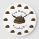 Este relógio divertido diz "Poop Happens. . . Você pode lidar com isso" que pode ser alterado para seu próprio texto personalizado. Cada hora neste relógio está marcada com uma boa poo marrom.