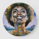 "Alma Ouro, Céus Infinitos". Uma mulher afro-moderna radiante rodeada por detalhes ouros e cósmicos simboliza força e transcendência espiritual. Misturando abstrato e elementos surreais, esta peça exude inspiração e positividade, com o sorriso da mulher representando esperança, e força interior para um amanhã mais brilhante e unido.