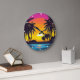 Este relógio da parede redonda apresenta uma cena de pôr do sol tropical que respira. As palmeiras abrigadas entalam um céu vibrante em chamas com laranjas ferozes, amarelos amarelos e pinks profundos, lançando um brilho quente sobre águas azuis tranquilas. O relógio tem números brancos claros e mãos pretas, fazer uma peça de arte funcional. É perfeito para adicionar sereno, ambiente de férias a qualquer sala.