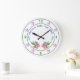 Características florais da primavera uma luz, design floral elegante. Flores e folhas adoráveis das características deste pulso de disparo de parede, com um olhar macio da aguarela. Os doze, os três, os seis e os nove são um verde amarelo, para combinar as folhas; quando os números restantes forem substitui com uma flor. O texto, lê no centro, a "felicidade floresce de dentro de" e pode personalizado com seu próprio texto.