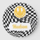 Um sorriso de aniversário de um cara feliz face a um relâmpago preto, branco e amarelo de rancho legal relógio de decoração de festa de aniversário.