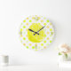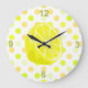 O pulso de disparo de parede ensolarado da cozinha feito no citrino coloriu bolinhas, em um fundo branco. Os gráficos de um meio limão decoram o meio, e os números coloridos chartreuse são em torno da parte externa. Personalize para adicionar o texto a este que refresca olhando o pulso de disparo.