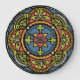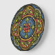 Este pulso de disparo de parede lindo vem em dois tamanhos redondos, ou escolhe quadrado para um olhar pouco frequente. Nas máscaras de verde, de azul, brandamente o vermelho e o ouro, com numerais amarelos simples, este pulso de disparo seria bonito em uma biblioteca, em um antro, ou em um quarto. Design de Copyright Scarebaby.