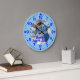 O pulso de disparo tem pontos azuis para os minutos e as horas, e números azuis, em um fundo azul mais claro.