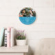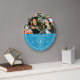 Simples esboço do efeito de pedra central gráficos de arte azul topaz e branco adicionam sua foto 4° relógio de aniversário de casamento. Personalize com seu próprio nome de casal de aniversário, ano do casamento e ano do aniversário, além de adicionar uma fotografia paisagem do casal de aniversário. O quarto aniversário de casamento está associado ao topaz azul de pedra gemstone e o coração simboliza o amor. Gráficos e design por Sarah Trett para www.mylittleeden.com e www.mylittleedenweddings.com no Zazzle.