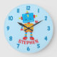 Relógio Grande Parede Quarto de Meninos Robô Ciência Fofo. Personalize este design personalizado com seu próprio nome ou texto.