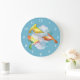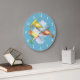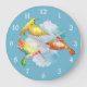 Este elegante relógio de parede apresenta belas imagens de beija-flores em tons de laranja, verde e amarelo. Os pássaros voam contra uma nuvem de abstrato e um fundo azul-céu. Números brancos ao redor do perímetro facilitam a leitura do relógio. Um pouco de natureza, e um pouco de fantasia também!
