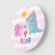 Relógio Grande Raja de Dinossauro Rosa Rosa Cinza-Rosa Enfermeira