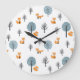 Relógio Grande Raposa Florestal: Fundo Branco Vintage