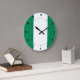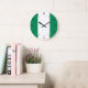 Relógios de parede com pavilhão da República Federal da Nigéria; bandeira verde e branca