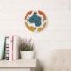 Fique ligado com este relógio de parede Retro Abstrato Orgânico! Este design artístico e funky apresenta grandes formas de "bolhas" fluidas em uma paleta curada de cores Modernas de Meados do Século, incluindo um azul-teal profundo, ferrugem terracota e amarelo mostarda em um fundo creme.