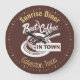 Informe a sua família ou clientes que o "Melhor Café na Cidade" é servido em seu estabelecimento, personalizado com texto redondo para adicionar seu nome comercial, cidade e estado ou seu slogan.