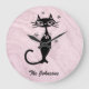Fifties retro look black cat personalized kitchen clock in pink.
