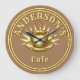 This cafe sign template features a digitally enhanced print of a retro vintage woodcut style illustration of a coffee cup. All the text can easily be personalized and the colors can also be customized.