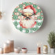 Relógio Grande Retro Papai Noel Verde E Xadrez Branca