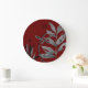 Relógio Grande Rich Burgundy & Cinza Artística Botânica