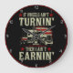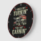Este relógio patriótico incorpora a verdade essencial do sustento de um caminhoneiro. Contra um fundo preto com uma jante vermelha, ele apresenta uma silhueta de uma caminhonete sobre uma bandeira americana em apuros. O texto diz enfaticamente, "SE AS RODAS NÃO VÃO VOLTAR ENTÃO EU NÃO VOU GANHAR", destacando a ligação direta entre movimento e renda para motoristas. A ferramenta design também pode ser usada para adicionar texto personalizado.