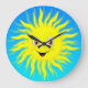 Uma imagem do Sol num céu azul. Um dia brilhante ensolarado! Personagem de desenho animado.