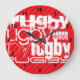 Futebol legal, branco de rugby, padrão de texto em nuvem desportivo, modelo em vermelho, faixas vermelhas na escarpa, fundo listrado! presente de excelente para crianças, adolescentes, adolescentes ou adultos; garoto! Tendência, design bonitinho com diferentes fontes brancas brilhantes e divertidas!