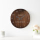 Rustic barn wood pattern family name farmhouse wall clock.