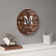 Relógio monograma com textura castanha escura. Personalize o relógio da família com o seu nome e a letra inicial do monograma.