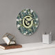 This floral clock features a beautiful light sage Asian print of tropical flowers and golden green leaves in Chinoiserie style. Your initial appears in dark black against a chartreuse circle, around the clock hand, and it's bordered in black. Make sure to type your initial in the Personalize section.
