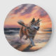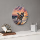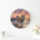 Relógio Grande Sandy Paws Akita Dog em Beach Sunset