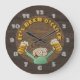 Um relógio "It's Beer O'Clock" para a sua caverna, bar ou sala de recreação. Uma cara de desenhos animados feliz está segurando dois grandes e frios. Com textura castanha escura de madeira para um olhar rústico resistente. O texto é personalizável.