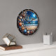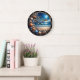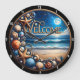 Relógio de Seashell e Starfish decorativo com Design de Praia e Oceano Um relógio decorativo de parede com conchas e estrelas-do-mar contra a praia do oceano e o céu noturno, evocando vibrações costeiras serenas.
