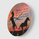 Dourada fé cristã apresentando respiração considerando duas silhuetas de Black Stallone.Com o sol laranja sobre elas, um cavalo está sobre suas pernas traseiras.com o texto Psalm 25:12 - "Que homem é aquele que tem o LORD? Ele deve ensinar da forma que ele escolherá."