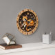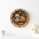 Brighten your living space with this delightful wall clock featuring a high-definition image of a smiling orange tabby cat. The happy feline is pictured resting comfortably on a rustic branch, framed by a charming arrangement of spring blossoms and swirling vines. The design is set against a deep, dark wood-textured center that makes the vibrant orange and cream tones of the cat truly stand out. An outer frame with a light wood grain print features bold numeric markers and clean dots for effortless timekeeping. This high-energy timepiece captures the joy of nature and the warmth of a beloved pet, making it a wonderful decorative focal point for a kitchen, sunroom, or child’s bedroom. While the artwork offers a rich, layered 3D-style appearance, the clock is a lightweight and durable graphic piece that brings a friendly, polished look to any wall.