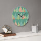 Relógio Grande Southwest Geo Step | Teal Triangle Pattern