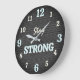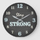 Large numbers in ivory and light turquoise stand out beautifully against the dark background, making the clock easy to read while adding a modern sporty contrast. The motivational phrase Stay Strong appears in matching ivory and turquoise tones, reinforcing the powerful fitness message.
