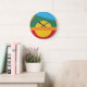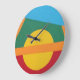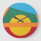 This clock presents a stylized setting sun framed by expressive red and green fields. The minimal shapes and strong color contrast create a dramatic abstract interpretation of dusk—where daylight dissolves into evening calm. A standout piece that combines functional design with contemporary art.