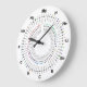 As horas incluem os elementos 1 (hidrogênio) a 12 (magnésio). Cada elemento é posicionado sobre o minuto de seu número atômico. Apenas adicione 60 para o círculo íntimo (por exemplo tório em 30 minutos + 60 = número atômico 90 do Th). Inclui cores para cada elemento usado pelo visor popular da estrutura química de Jmol (Jmol: um visor de Java do open source para estruturas químicas em 3D. http://www.jmol.org/). Os nomes de cada elemento alistado convenientemente na linha minúscula.