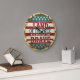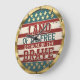 Este relógio circular mostra de forma destacada uma angustiada design de bandeira americana. O texto patriótico e negrito diz "TERRA DOS LIVRES POR CAUSA DO CRAVO" na cara. As seções superior e inferior exibem campos azuis com estrelas, enquanto o meio tem listras vermelhas e brancas, dando-lhe uma aparência vintage ou rústica. O relógio está embutido em um ouro, armado.