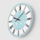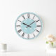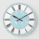 Uma cor damasco azul e branca bonito com uma face do relógio de numeral romano.