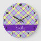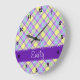 Relógio Grande Teste padrão roxo & amarelo da xadrez