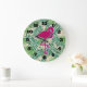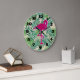 Relógio Grande Teste padrão tropical das folhas e flamingo