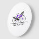 Relógio Grande Texto de cicologista com bicicleta roxa