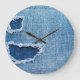 Relógio Grande Textura do tecido denim rasgada, matizes azuis.