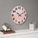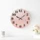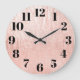 Textura digital de rosa dourada pálida, com números de rosto de gordura preta num relógio de parede personalizado para ela. Você também pode alterar a cor do texto da face do relógio. elegância moderna. Design de vidro feminino.