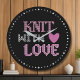 Prepare o seu espaço de trabalho com este encantador relógio de parede com a frase "Knit with Love" num efeito de costura em estilo fio rosa sobre um fundo preto em negrito. Perfeito para tricô, croqueteiros, ou qualquer pessoa que ame criações feitas à mão, este relógio adiciona um toque quente e pessoal a qualquer estúdio, sala de estar ou canto do artesanato. Seu contraste moderno e design texturizado fazem com que seja atraente e sentida — um dom perfeito para amantes de fios!