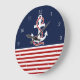 O relógio decorativo do Na moda apresenta uma faixa náutica vermelha e branca com uma ilustração do vetor da âncora branca sobre um fundo azul que você pode mudar facilmente a cor. Itens correspondentes disponíveis em nossa loja.www.zazzle.com/giftsforanyoccasions*