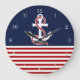 Relógio Grande Tiras brancas vermelhas náuticas e âncora branca