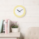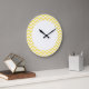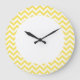 Hip e Trendy Chevron Wall Clock. Este relógio legal apresenta um padrão de zag em zag em amarelo e branco. Adicione texto a este design para lhe dar um toque pessoal.